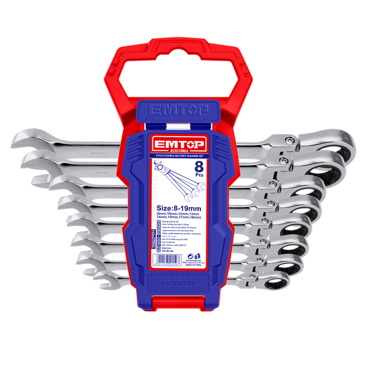 Fournisseur :E-Showroom MCPrix habituel €28,90 EURJeu de 8 clés mixtes à cliquet articulées EMTOP