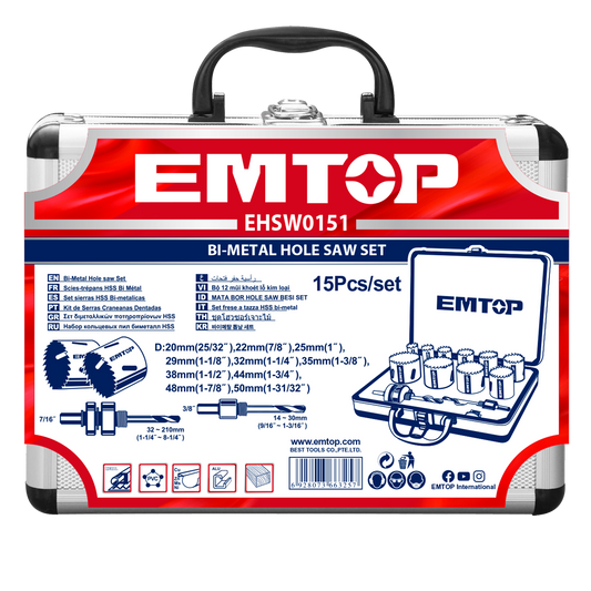 Fournisseur :E-Showroom MCPrix habituel €77,20 EURCoffret de 15 pcs scies cloches et trépans bimétalliques EMTOP
