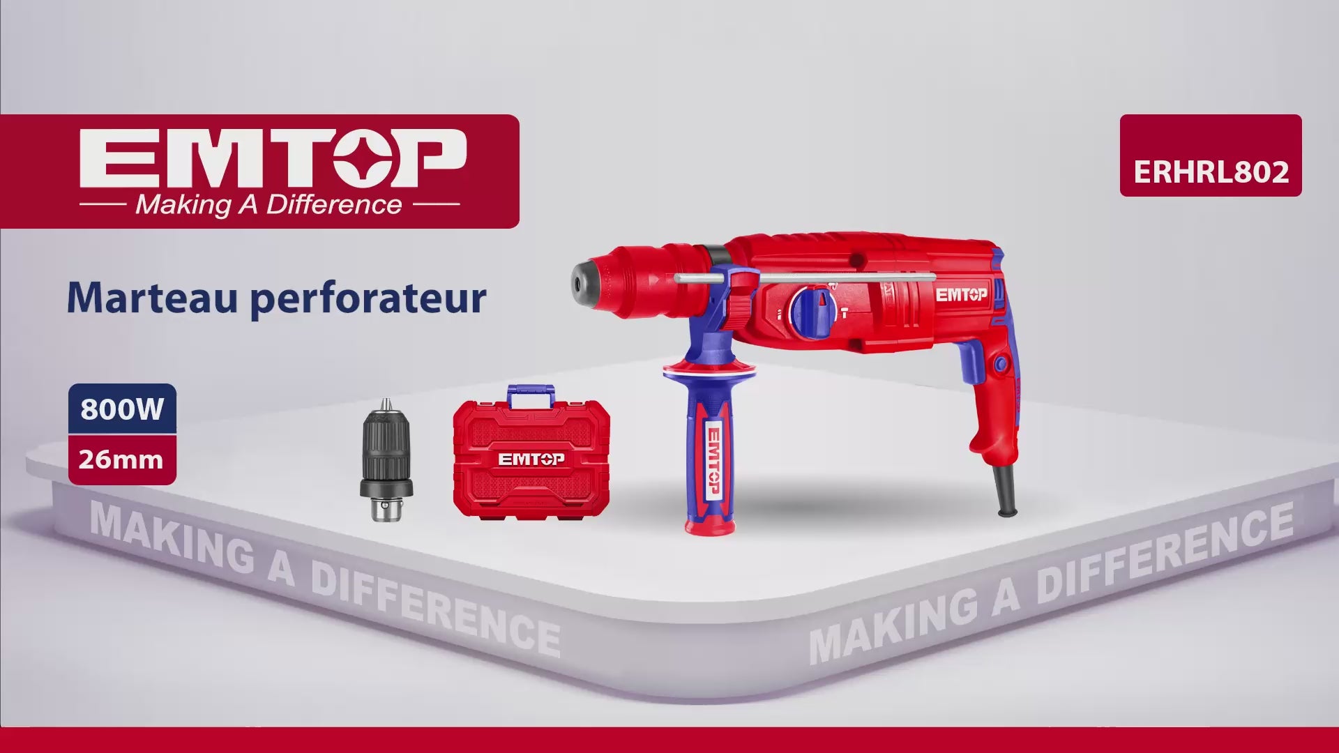 Ce marteau perforateur EMTOP est idéal pour les professionnels et bricoleurs recherchant un outil puissant, polyvalent et fiable pour leurs travaux.
