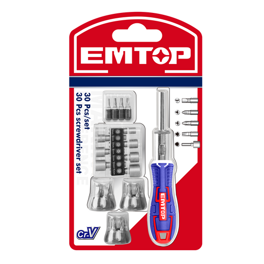 EMTOP 30 embouts + 1 Tournevis à cliquet multifonction à poignée en T