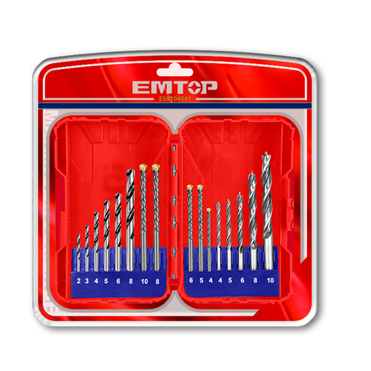 Produttore:E-Showroom MCPrezzo di listino €11,50 EURJeu de 16 forets pour bois, maçonnerie et métal EMTOP