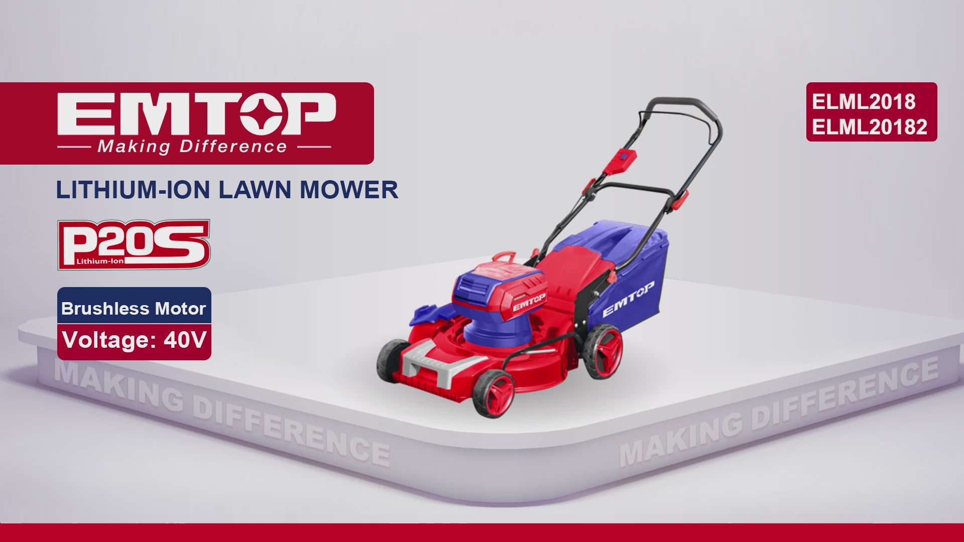 Tondeuses à gazon sans fil EMTOP 40V brushless avec 1 chargeur double port + 2 batteries lithium-ion 5.0Ah, Sac 60L, Diamètre de coupe 46 cm, Tondeuse sans fil, Tondeuse à batterie, Tondeuse électrique, Tondeuse à gazon, robot tondeuse et tondeuse autoportée